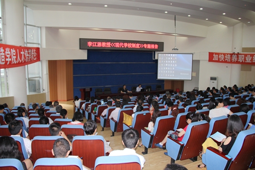 6月19日下午,应学院邀请,四川师范大学李江源教授来到我院,在学术报告厅为我院中层以上干部、全体坐班人员、专兼职教师以及通过资格审核的中层青年后备干部讲授了《现代学校制度》的报告。