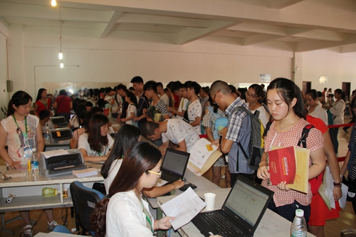 由于合理分流,在新生检录和收费大厅等处秩序井然。