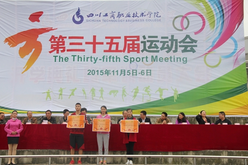 在闭幕式上,本届运动会组委会副主任、学院副院长岳文喜首先宣读了男子4*400、男子4*100,女子4*400、女子4*100以及50米迎面接力的前三名获奖团体,随后,本届运动会总裁判长胡锐宣读了运动会团体奖前四名、男子团体和女子团体总分前三名、热心大会服务奖以及优秀通讯组的的获奖名单,随后,出席闭幕式的领导为各奖项获得者颁发了荣誉证书和奖状。