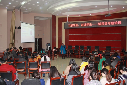 11月27日,学院学生处、心理健康教育中心组织了主题为“了解学生、走进学生”的辅导员心理健康专题培训,王开淮副院长出席了培训活动,各系书记、全校辅导员参加了本次培训。王正莉教授、刘晓老师为辅导员们进行了授课和分享交流。