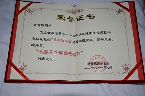 在北京市国家行政学院,我院设计艺术系环艺14336班胥刘博同学受到希贤教育基金会表彰,在“善意的传递”项目中表现突出,荣获“微善号全国优秀项目”奖,并上台发言,讲述自己在微公益志愿活动中的经历与感悟。中宣部副部长、中央精神文明建设指导委员会办公室专职副主任王世明参加了本次表彰会。
