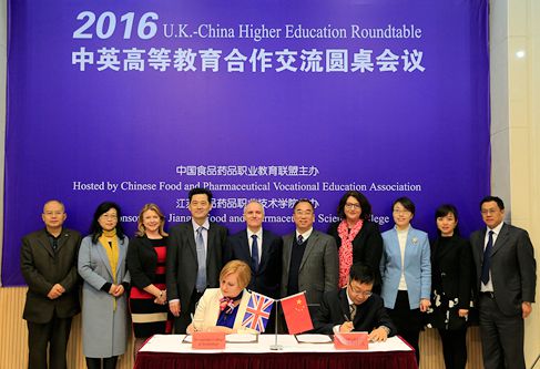 上午,2016中英高等教育合作交流圆桌会议在江苏食品药品职业技术学院举行。本次会议由中国食品药品职业教育联盟、江苏食品职业教育集团共同策划和组织,英国贝辛斯托克理工学院、英国南安普顿索伦特大学等国内外八所高校出席。我院作为中国食品药品职业教育联盟轮值主席,参加了本次会议。