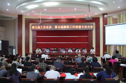 ,学院工会在学院行政楼一楼会议室召开第九届工会会员、第五届教职工代表大会第七次大会。两代会正式代表72人,实到65人。学院工会委员、学院领导、各部门工会主席、中层干部、民主党派代表列席了会议。会议由院办主任、工会副主席万辉君同志主持。