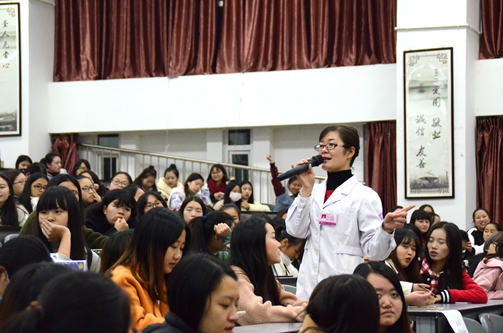 讲座中,和美医院勾丹主任从女性生理特征、女生生理期、乳腺癌高发人群、如何预防乳腺癌等五个方面进行了较为详尽地讲解。之后勾主任凭借丰富的经验,用生动的语言和贴近生活的实例从饮食、运动、心态三个方面介绍了女生在青春期的保健常识,得到了现场女同学的普遍认可和回应。最后,勾主任和现场女生进行了现场互动交流,结合自身情况向勾主任进行咨询,勾主任作出了详细的指导和讲解,现场气氛十分活跃。