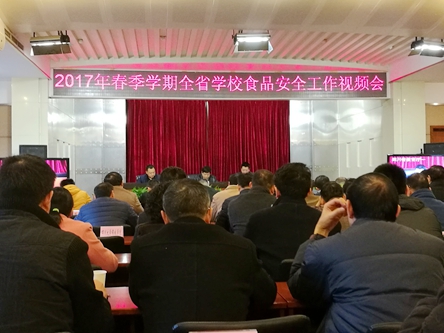 ,省教育厅、省食药局联合召开了2017年春季学期全省学校食品安全工作视频会。各市(州)、县(市、区)教育局、食药局、各高校相关领导和部门负责人共500余人参加会议。教育厅副厅长洪流、省食品药品监督管理局食品安全总监张海峰出席会议并讲话。我院副院长邓春生、总务处副处长魏红军参加会议。