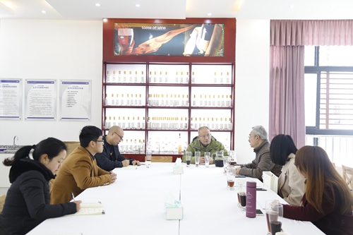 ,四川大学锦江学院白酒学院院长张文学教授、学院办公室负责人辜春燕、酿酒工程专业教研室副主任赵盈盈等人到我校酒食系考察交流。