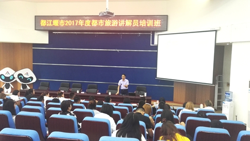 为进一步推进讲解员管理体制改革,优化旅游公共服务,6月13日,都江堰市2017年度都市旅游讲解员培训班在我校学术报告厅开班。本次培训由都江堰市旅游局主办,我校经管系承办。青城山—都江堰景区、虹口景区、灌县古城景区、国旅公司目前实际从事讲解服务的200余名新老讲解员参加了培训。