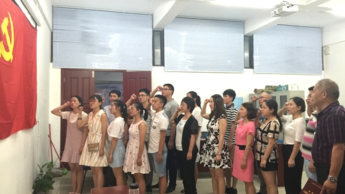 会议开始,在朱书记的带领下,新学生党员进行了庄严的入党宣誓,老党员们在党旗下重温了入党誓词。朱书记结合我院申办优质院校的实际情况,要求各位党员充分发挥党员的模范带头作用,在特殊时期,党员不讲条件,勇于担当,珍惜建党96年来一切的成果。随后,教师党员和学生党员就如何深入推进“两学一做”学习教育常态化、制度化和我党的光辉历程展开了激烈的讨论。