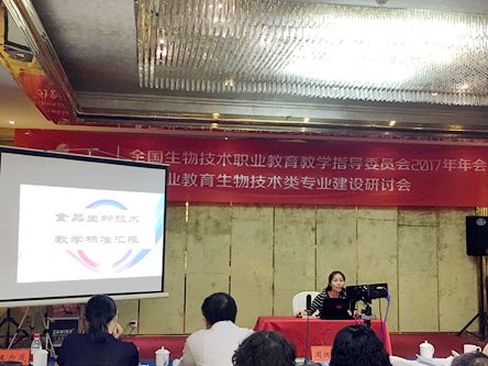我校教务处魏明英副教授作为食品生物技术专业指导委员会副主任牵头进行了高等职业学校食品生物技术专业教学标准的修订工作,并于24日下午进行的全国职业教育生物技术类专业建设教学研讨会中进行了汇报。魏明英副教授就食品生物技术专业教学标准的制定过程,调研情况及课程体系设置等与全国各地高职院校专家进行了交流,现场听取了专家和同行们的意见和建议。
