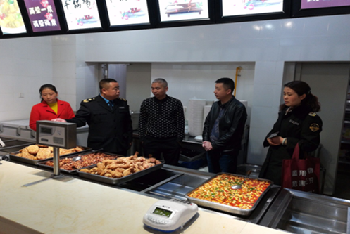 3月15日上午,都江堰市市场监督管理局聚源市场监督管理负责人一行对学校食堂内食品卫生安全进行了检查。当日,在学校总务处相关负责同志的陪同下,查看学校一食堂的加工车间及检查餐具消毒和食品留样情况,认真查看食堂食材出入登记和加工情况记录。
