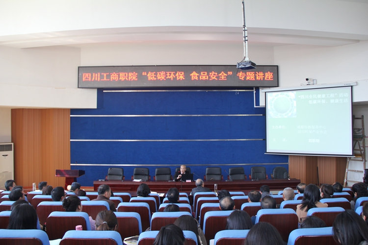 为进一步加强校园安全防护,扎实推进绿色校园建设,进一步增强全校师生环境安全、食品安全意识,倡导师生践行健康环保的生活方式,10月25日下午,学校特邀成都科教中心环保宣教部刘系明主任在学术厅作“低碳环保 食品安全”主题培训讲座。学校中层以上干部、全体辅导员和思政部教师聆听了讲座。学校党委书记黄天贵教授主持讲座。
