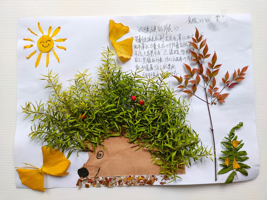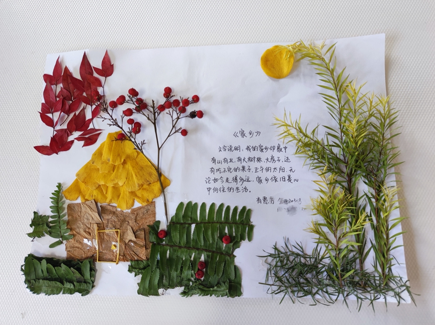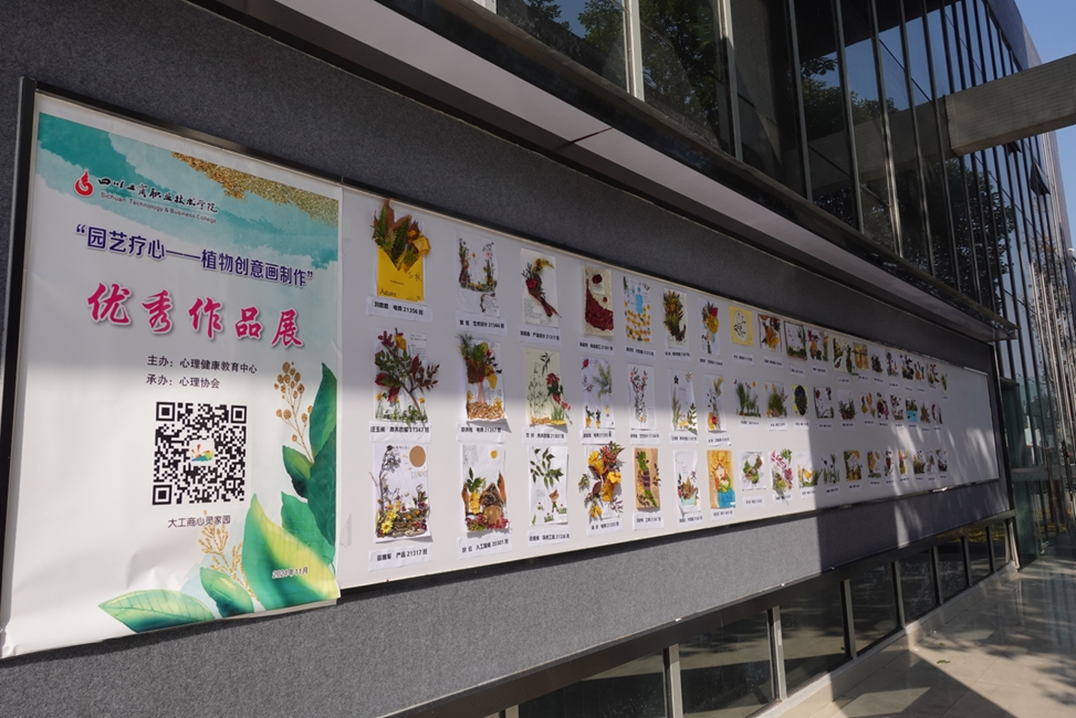 “园艺疗心——植物创意画制作”活动的部分优秀作品在设计艺术学院作品展示区展出,来往师生纷纷驻足观看,获得一致好评。