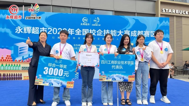 9月14日,由永辉超市举办的2023全国校企技能大赛(成都赛区)在永辉文华广场店开赛。来自四川、陕西9所高职院校的18支参赛队伍同台竞技,在唐晓华、廖雯两位老师的指导下,我校电商学院5名参赛同学奋勇争先,拔得头筹。朱代雲、欧明慧、郭春霞获“创意陈列秀”一等奖,郭林轩、冯鑫瑜获“创意视频秀”一等奖。参赛团队还凭借优秀赛绩获得“综合一等奖”荣誉。