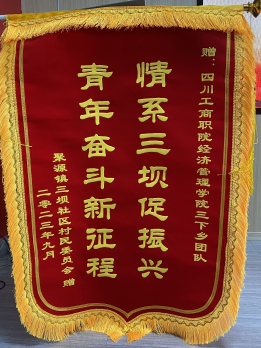 9月15日,聚源镇三坝社区马意书记一行六人来到经管学院,为学院“以青春为笺,落墨乡村振兴”暑期三下乡团队送上锦旗,以感谢团队今年暑期在社区开展的社会服务活动。