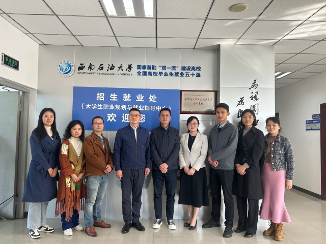 随后,我校调研组前往西南石油大学学生职业规划指导中心调研。中心罗兴娅老师介绍了该校学生职业生涯咨询辅导、就业指导等服务工作和职业生涯规划课程建设的总体情况,并陪同我校调研组参观了指导中心为企业搭建的招聘场地和日常咨询服务场地。