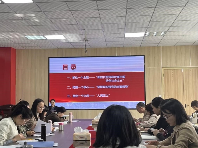 胡中丽老师领学《习近平著作选读》(第一卷),指出选本对于党员教师坚定不移贯彻执行党的理论、路线、方针和政策,不断增强“四个意识”、坚定“四个自信”、做到“两个维护”具有十分重要的意义。全体党员要进一步提高政治站位,在主题教育中学以致用,抓住“新时代坚持和发展中国特色社会主义”这一个主题,把握“坚持和加强党的全面领导”这个核心,坚定“人民至上”这个立场,锻造忠诚干净担当的政治品格,不断增强政治责任感和历史使命感。