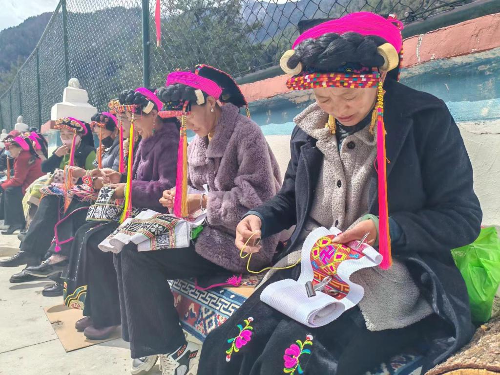 随后,妇女们在活动中心篮球场进行了藏族传统手工艺——藏绣比赛。妇女们飞针走线,动作娴熟,比赛现场气氛热烈,轻松愉悦,赛后每个妇女都获得了精美的小奖品。大家载歌载舞,用民族舞蹈表达她们对美好生活的热爱和向往。