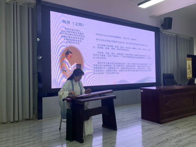胡日森老师以四川文化名人苏东坡在中华大地的活动轨迹为线索,分享了这位宋代大文豪的传奇人生故事。琴师杨梦老师现场抚琴,并介绍古琴的来源、发展历程和艺术特点,让大家对中国传统乐器有了更深入的了解。历史、古琴、诗词等古典美学汇聚一堂,呈现出一场诗风琴韵的视听盛宴。