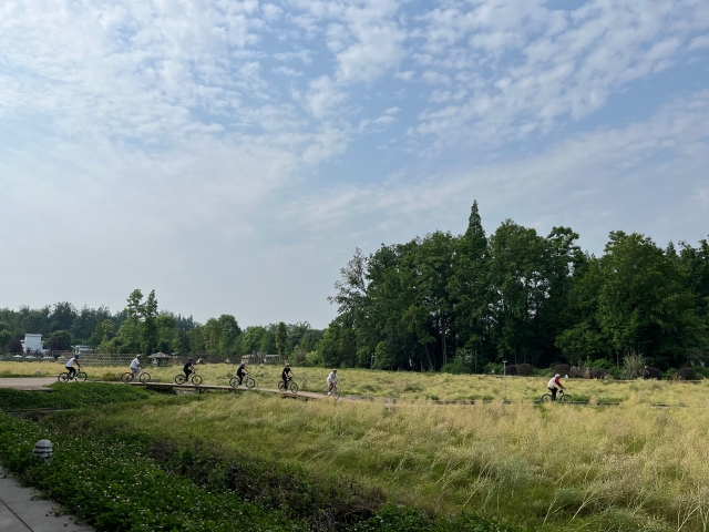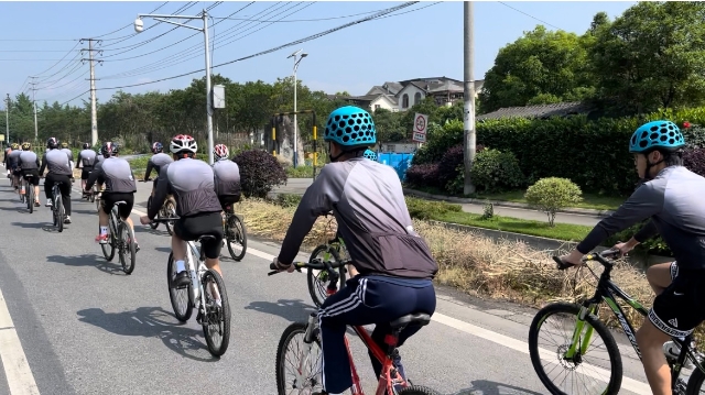 在休闲体育专业老师胡峻嘉的带领下,休体22315班十余名学生提前做好防护工作和安全检查,顶着炎炎烈日向目的地进发。整个骑行过程安全有序,顺利完成课程实训任务。