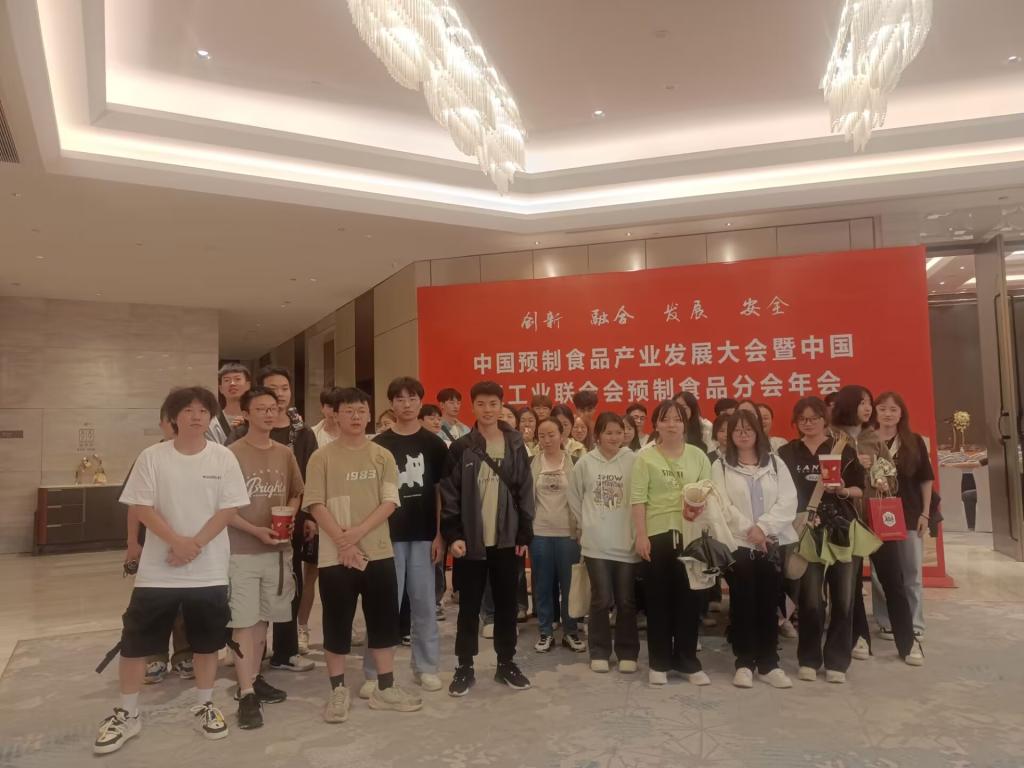 5月29日,中国预制食品产业发展大会暨中国轻工业联合会预制食品分会年会在四川省乐山市召开。此次会议由中国轻工业联合会预制食品分会主办,中国轻工业联合会指导,中轻食品工业管理中心承办,乐山市市中区城市投资建设有限公司协办。来自相关行业的专家学者和企业代表200多名与会人员共同探讨预制食品产业发展未来。我校轻工学院党总支副书记张凤英、徐毅博士、任红霞博士、张诗琪老师带领食品科学与工程(职教本科)专业的40名同学参加此次会议。