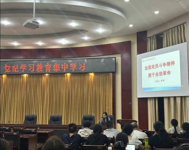 近日,我校基层党组织按照学校党委统一部署安排,通过专题研讨、主题党日等多种形式,进一步推动党纪学习教育走深走实。我校全体党委常委、党纪学习教育宣讲团在各党总支(直属党支部)深入开展宣讲,帮助党员、干部更加完整、准确、全面把握《中国共产党纪律处分条例》的精神实质和内容要义。