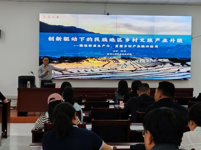 为深入学习贯彻党的二十大精神,以科教力量赋能乡村振兴,推动彝区文旅产业高质量发展,6月4日,国际旅游与体育学院智慧康旅专业群主任刘洋赴凉山彝族自治州甘洛县,为当地干部开展“创新驱动下的民族地区乡村文旅产业升级——激活新质生产力,重塑乡村产业振兴格局”专题讲座。
