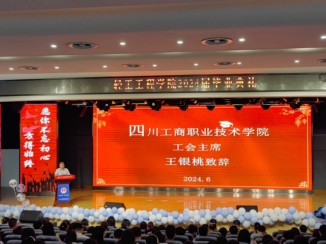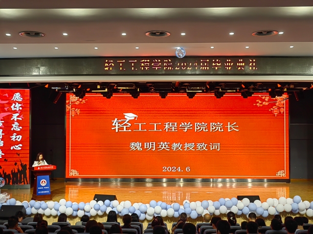 “时光的河入海流,终于我们分头走,没有哪个港口,是永远的停留……”6月20日,轻工工程学院在多功能二厅举行2024届毕业生毕业典礼,为莘莘学子留下美好而难忘的校园记忆。学校党委常委、工会主席王银桃,党委常委、轻工工程学院党总支书记张崇军,轻工工程学院党总支副书记、院长魏明英,轻工工程学院副院长唐勇和学院2024届毕业生共同参加毕业典礼。轻工工程学院党总支副书记张凤英主持典礼。