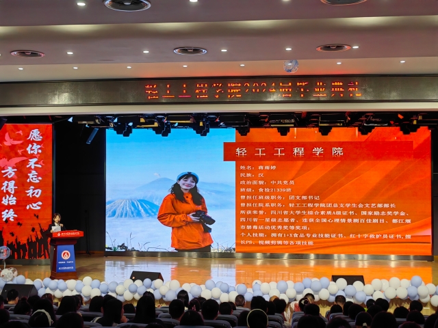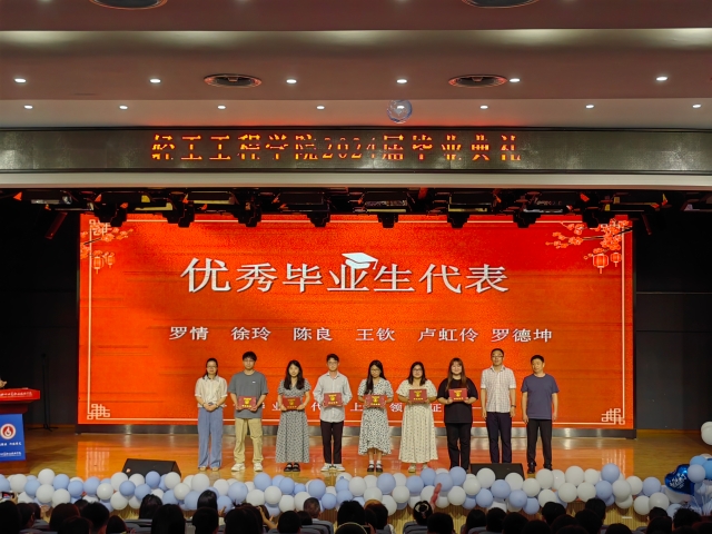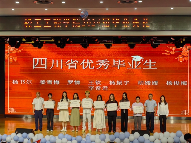 杨俊梅、吴成蝶等21名“2024届四川省优秀大学生毕业生”上台接受了表彰,学院领导为陈雄莫、袁佳宇等35名毕业生代表颁发了毕业证书。