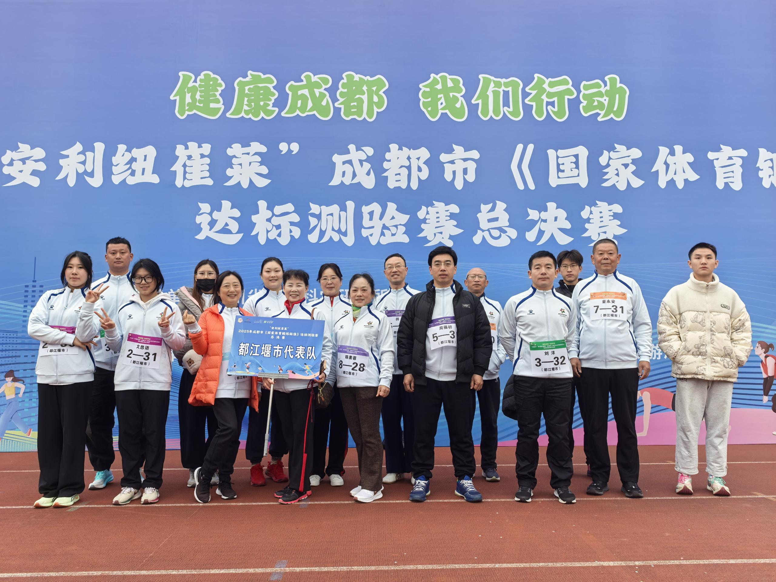 近日,由成都市体育局主办的2025年“安利纽崔莱”成都市国民体质达标赛总决赛在双流体育中心圆满举行。我院精心选送的两名休闲体育专业学生,代表都江堰市参加比赛,并在比赛中凭借扎实的体能基础与出色的竞技状态奋勇拼搏,最终在青年组比拼中斩获佳绩:25级休体学生李胜杨获得了青年男子组冠军,25级休体学生文思语获得了青年女子组季军。