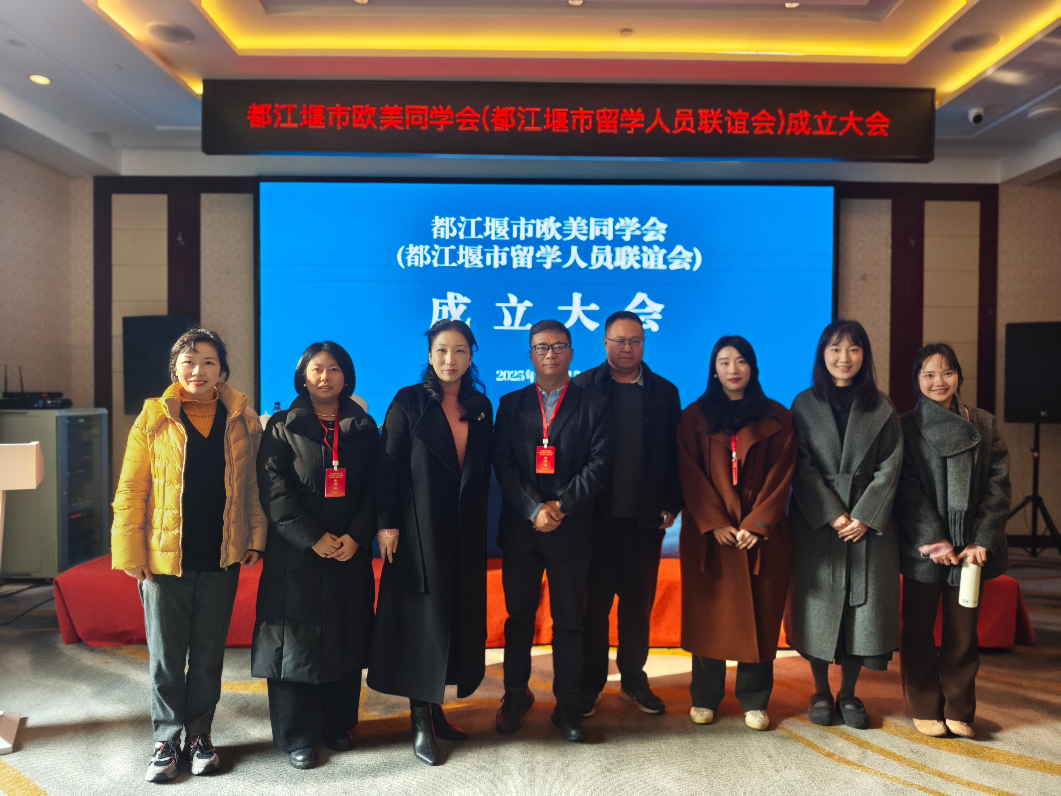 12月15日,都江堰市欧美同学会(都江堰市留学人员联谊会)成立大会在都江堰市召开,成都市委统战部副部长、市政府台办主任傅军,成都市欧美同学会(成都市留学人员联谊会)副会长游弋,都江堰市委常委、统战部部长温冬明出席会议。我院党委常委、宣传统战部部长周婷,学院教师邹堰柯、邱薏莼、马一迅、周澍娴、殷雨婷、蒋润洪、刘姝言应邀参会。