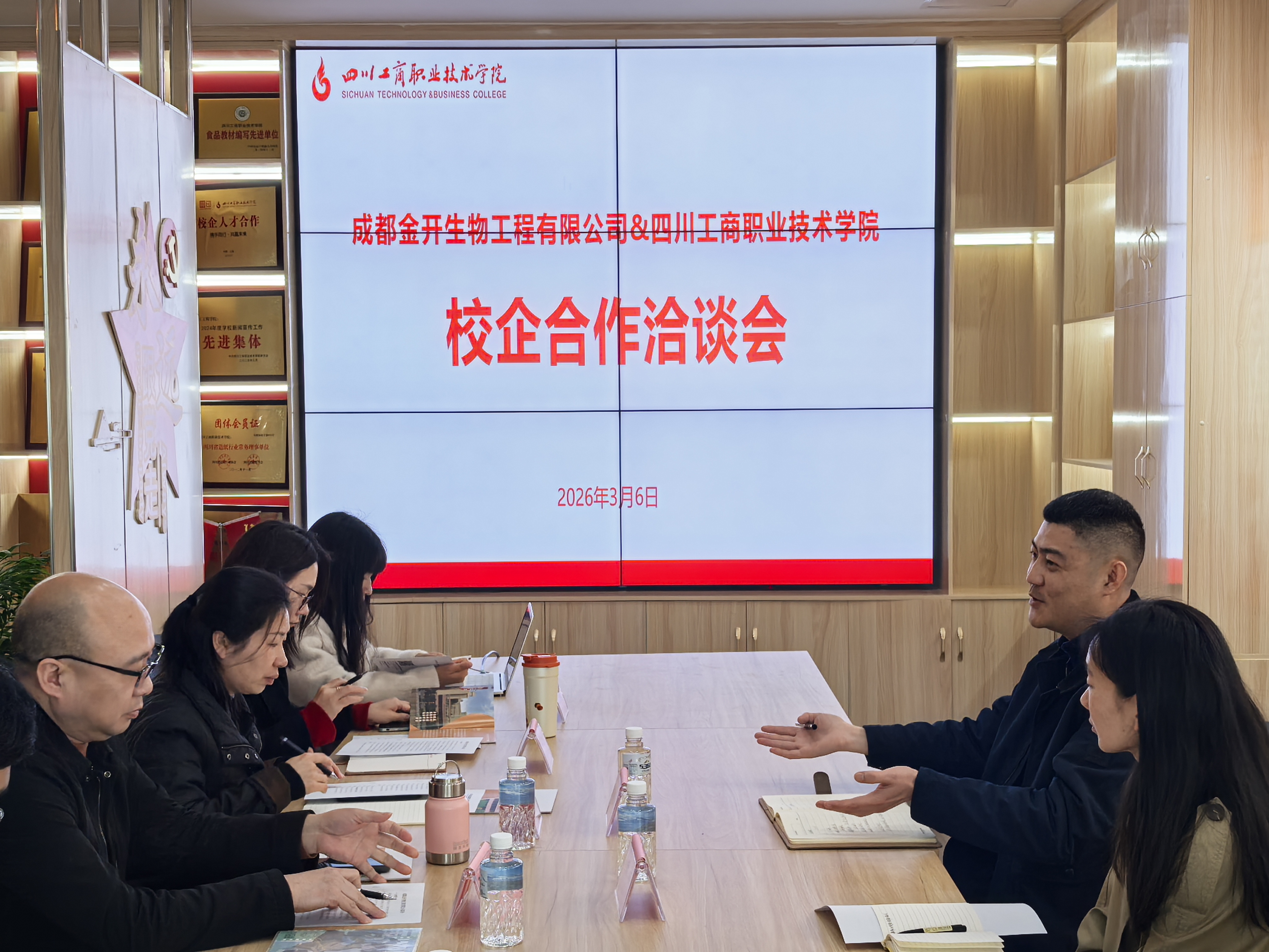 3月6日,成都金开生物工程有限公司高级经理刘峰一行到访我院,双方围绕深化校企合作、推进产教融合、实现协同育人等议题在综合实训楼512会议室开展专项洽谈。轻工工程学院党总支书记张崇军主持洽谈会。