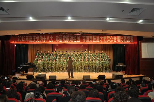 由都江堰市委宣传部主办的2012“喜庆党的十八大,幸福欢歌颂祖国”百团竞技展才艺群众合唱比赛于11月27日在壹街区工人文化馆举行。我院合唱团与都江堰市机关、乡镇、高校、企事业单位、文艺社团的20余支合唱队共同参加了比赛。