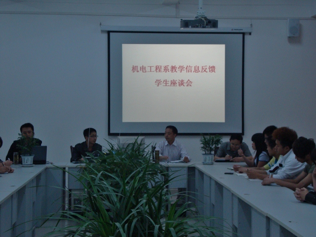 本次会议内容包括三方面:对老师教学质量的看法、对学校规章制度的建议以及对学生自身情况的认识。该会议从各个方面全面的评价了学校的教学等方面不足之处。同学们纷纷在会上发言。他们在肯定机电系教师教学情况的同时,也根据各专业提出了同学们自己的看法和意见。