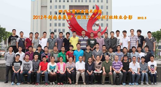 5月23日,轻化工程系圆满完成了对2012年剑南春集团酿酒工培训7班的培训任务。来自剑南春集团的45名学员在完成了白酒工艺、发酵分析、生物化学和法律基础与职业道德等课程的学习后,全部通过考核,顺利毕业。