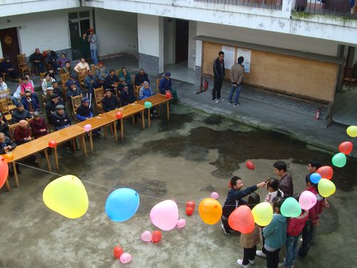 上午8时40分,志愿者们一到达目的地,就受到敬老院爷爷奶奶们的热烈欢迎。随后,志愿者们在院里院外,屋里屋外有序地忙开了,有的和老人们拉起家常,有的帮助一些行动不便的老人打扫卫生,有的帮老人在蔬菜园子里清除杂草,还有的吹气球、搬桌椅、安放音响等。上午10时整,志愿者精心为爷爷奶奶们准备的节目正式开始演出,一曲《红歌》、《滚滚长江东流水》赢得在场热烈掌声,敬老院的王爷爷也加入活动中,并邀请伙伴一起展现歌喉,整个院子顿时气氛变得其乐融融。