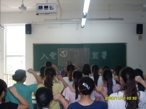 下午,在高昂的国歌声中,轻化工程系的全体学生党员欢聚二教203教室,举行了庆祝建党90周年宣誓活动。