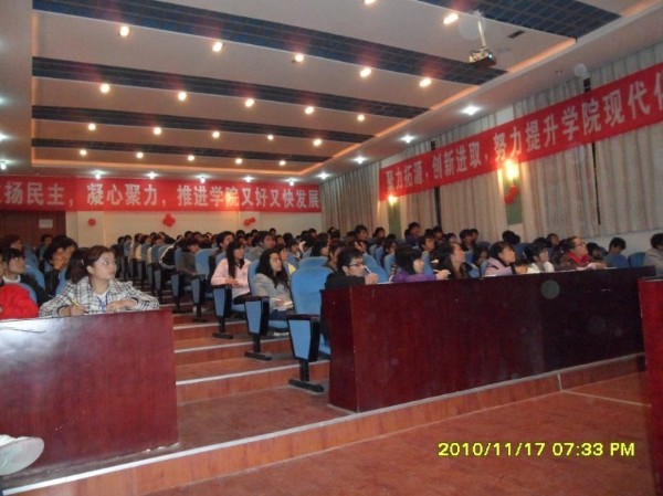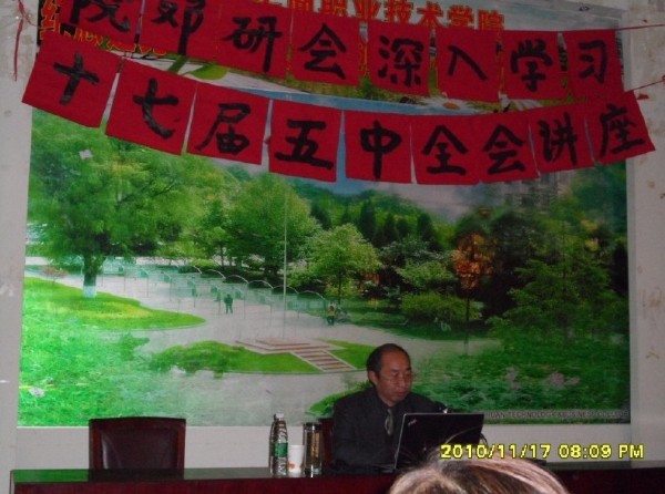 11月17日晚7:30,我院邓小平理论研究会,特邀学院党委副书记黄天贵在学术报告厅为邓研会全体会员开展了“认真贯彻学习十七届五中全会精神”的理论讲座。 中国共产党第十七届中央委员会第五次全体会议,于2010年10月15日至18日在北京举行。全会决定,增补习近平为中央军事委员会副主席。全会按照党章规定,决定递补中央委员会候补委员焉荣竹为中央委员会委员。全会审议并通过了《中共中央纪律检查委员会关于康日新问题的审查报告》,决定撤销康日新中央委员会委员职务,确认中央政治局2009年12月29日作出的给予康日新开除党籍的处分。全会号召,全党同志和全国各族人民要紧密团结在以胡锦涛同志为总书记的党中央周围,认真学习、深刻领会、切实贯彻全会精神,解放思想、实事求是、与时俱进、开拓创新,万众一心为实现“十二五”时期经济社会发展目标任务而奋斗。讲座中,黄书记深入浅出的对十七届五中全会的精神进行了传达。重点提到了我国的包容性增长,经济和国家在国际的地位,以及国内的城乡问题。在讲座结束时,黄书记特别强调我们当代大学生应当努力学习实践十七届五中全会精神,坚持理想信念,全面成才,坚持维护社会的和谐发展。 讲座持续了两个小时,现场秩序纪律较好,会员认真听取和学习十七届五中全会精神,力求全面贯彻落实十七届五中全会的精神,更好地提高我院学生的思想政治素质和道德修养。 (邓研会 景鹏程 文 奚玉龙 图)