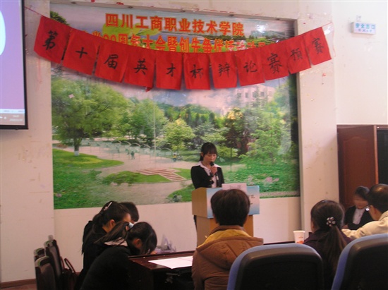 11月19日下午4:00,第十届“英才杯”辩论赛淘汰赛第三场在学院本部的学术报告厅举行。双方代表队分别是学院西区代表队(正方)与轻化工程系代表队(反方)。辩题为:“宽松式管理对大学生是利大于弊还是弊大于利?” 本场辩论赛由正反双方立论、论证或辩驳、盘问、自由辩论和总结陈词5个部分组成。本场辩论赛辩手们很快进入状态,一开场便火星四溅,自由辩论环节部分尤为激烈,各位辩手都积极发言,思维都非常活跃、开阔,旁征博引,针锋相对。由于代表队双方实力旗鼓相当,在比赛过程中表现都非常优异,比分也难分伯仲。 评委们经过反复的斟酌和讨论,一致决定让双方现场再次进行一次各5分钟的加时自由辩论,辩题为:“大学生恋爱是利大于弊还是弊大于利?”经过代表队双方5分钟的现场准备,加时辩论赛把本次辩论赛推向了高潮。最终西区代表队用较强的辩论依据赢得了此次比赛的胜利,轻化工程系代表队陈婷同学获“优秀辩手”奖。