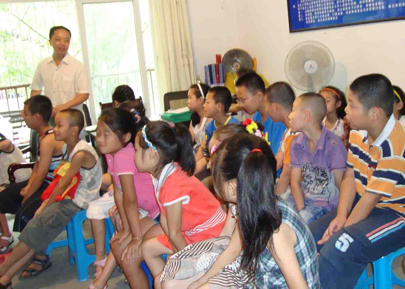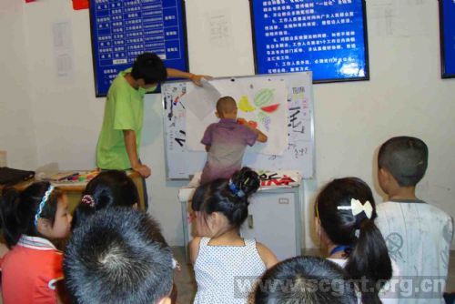8月10日上午,“三下乡”服务队迎着清晨的阳光,再一次来到滨河小区。今天我们的主要任务是要让小区的小朋友们学会用英语认识水果,并给小朋友们讲解水果的营养价值及健康食用。 当我们服务队还未到达小区教室时,小朋友们已经早早地在门口等候着。当教室们一打开,他们争先恐后,表现出一种积极求学的态度。上午9:00,今天的活动正式开始。服务队副队长侯美伶首先收取昨日的家庭作业,并一一评改;然后请了一些作业典型小朋友上黑板写出单词,让小朋友们找到错误的地方,并对这些错误单词再一次进行讲解;最后侯美伶同学就以昨天课程所学的单词和小朋友们进行了互动游戏,对所学单词开展接龙游戏,把单词的组成及读法在小朋友们的头脑中扎根,让小朋友们在快乐中学习知识。  简单的作业评讲伴着快乐的游戏后,队员马俊和小朋友们一起进入了水果世界。夏天的到来,我们身边的水果种类也渐渐多了起来,有西瓜、葡萄、青苹果、香蕉、桃子、草莓、梨子等。在马俊同学的引导下,告诉夏天人们最喜爱的水果是西瓜,并告诉小朋友们西瓜有消暑解暑的作用,提醒小朋友们夏天注意防暑解热,接下来,又给他们讲了葡萄的种类,颜色,还教他们画葡萄的画法并且讲述了关于葡萄的营养价值。在画画的课堂上,所画的水果都没有着色,之后有讲述了好几种水果。在课堂的最后请了小朋友们为自己喜爱的水果添上应有的色彩,让我们的拼盘变得更加美丽。  当天上午,“三下乡”服务队的所在学校四川工商职业技术学院机电系的系党总支书记张思杨同志在百忙之中抽空来到滨河小区问候我们的队员们。 天气酷热,骄阳似火,丝毫没有减少同学们支教及服务滨江小区的热情。更重要的是四川工商职业技术学院机电工程系党总支书记张思杨不辞劳苦,在百忙之中专程来到滨江小区看望三下乡实践队的我们,与大家进行了亲切的会谈;即对我们近几天在小区工作情况、生活安排、安全问题的了解,虽然空间略显狭小,有些队员不得不站着和张书记谈话,但大家的积极性并未受到丝毫影响。交谈中张书记对工作进行指导及建议,并耐心听取大家在这段时间的心得体会;以便改善我们的不足和继续发扬的我们的优点。有领导的关怀,有滨江小区居民的支持,我们三下乡实践服务小队在后续的工作中一定再接再厉,为众人呈上一份满意的答卷。  了解完我们队伍的工作情况后,张书记与小朋友们进行了交流,对他克服炎热天气坚持学习的精神表示赞扬。张书记祝愿小朋友们能健康快乐的成长,将来成为对国家有用的人。
