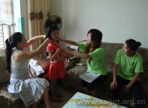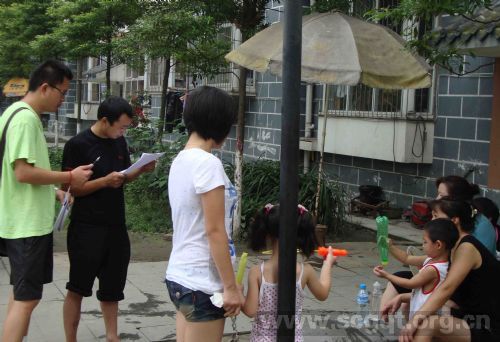 8月11日,清晨的阳光射入教室,窗外树上的小鸟和知了早已开始唱歌,美妙的旋律打破了兴趣教室的沉静。四川工商职业技术学院机电工程系“三下乡”服务队也开始今天的工作。为了在支教过程中保证学生的全面发展,我们“三下乡”社会实践服务队的支教队员们在滨江小区的小朋友语、数、外等基础学科的授课,还在教学过程中加入了音乐、美术等课程,在指导学生研习基础文化课的同时,不忽略其身体素质提高和文艺修养的培养。小朋友们也如往常一样,早早的来到了兴趣教室,我们的课程也拉开了序幕。  服务队为了让小朋友全面发展,因此在今天的课程中,服务队队员王敏教小朋友们歌曲。王敏同学首先对小朋友们的发音进行校准,并带领小朋友们一起练声,然后给大家讲了关于歌曲的知识,比如歌曲的分类,歌曲的格式,歌曲的来源等相关知识。最后王敏同学教小朋友们唱歌曲《明天会更好》,在王敏同学的耐心教导下,小朋友们慢慢地可以唱出这首歌曲,并一起演唱了这首经典歌曲《明天会更好》。 即将上映的《长江7号爱地球》吸引了小朋友们的目光,剧中小朋友们特别喜爱外星球来的七仔,因此有小朋友们提出了学习唱《长江7号爱地球》的主题曲。服务队听到这个要求后,想起歌曲的歌词内容主要是介绍七仔的容貌及特点,因此我们服务队的队员何鹏飞突发奇想,想出边教唱,边教画的想法。我们也一致认同,并开始了这一特殊的教学。我们服务队的副队长侯美伶给小朋友们教唱,而队员马俊则是按照歌词的内容为小朋友们教学,并在最后得到了很好的效果。小朋友们又一次在轻松快乐的环境下学习了知识。服务队也从中学到好的教学方法可以提高教学效率,并且大家都很轻松快乐。  当天下午,“三下乡”服务队顶着酷暑高温走家串户,对小区居民的居住环境进行了一个调查。服务队在队长安排下分成了两个小组分头对小区的情况进行调查。 第一组,副队长侯美伶带队,通过以小朋友为媒介,我们走进了一些家庭。进入小朋友的家里后,首先对小朋友的学习情况进行了解,从与家长的交流当中了解到小朋友们的生活习惯,学习习惯都很好,然后请小朋友们的家长填了一些调查问卷。  第二组,队长带领另两名队员,对小区的居民汇聚点进行考察访问。这一组以生活状况入手,了解居民的基本生活水平以及经济来源。从他们的口中了解到政府的政策好,生活有一定的保障,之后也对他们进行了问卷调查。