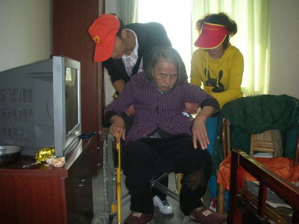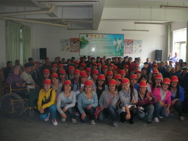 此次活动的地点设在胥家镇都江堰市社会福利院,上午8:30分,志愿者们带着准备好的新鲜水果前往疗养院。志愿者们刚到达福利院,就立刻为老人们锄土、扫地、晒药材、洗衣服。临近中午时,文艺部的志愿者给老人们表演了舞蹈等精彩节目。老人们对志愿者的到来感到很激动,他们拉着志愿者,对志愿者述说过去,畅谈心事,纷纷对志愿者说“可爱的孩子们,真是谢谢你们了。”