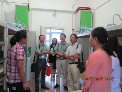 顾元国主任一行人首先来到了我校3号公寓,根据新生报到登记信息,对机电系女生所在的寝室逐一敲门拜访。老师们的到来,得到了学生们的热烈欢迎。虽然是正式报道的第一天,但机电系女生所在的寝室都已收拾得干净整洁,室内空气清新,学生们的内务工作得到了老师们的肯定和赞赏。系上负责人细致询问了新生对学校环境是否适应、寝室内设施是否完好以及学生对校园一卡通的使用和相关的管理规定是否清楚等等,并对学生提出的问题进行耐心讲解,对学生们的人身财产安全问题进行提醒。