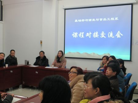 课程是一个学校的产品,学生质量是学校的生命线。为了合理设置课程内容、提高课堂授课效率,切实加强学生培养质量,3月3日下午,基础部和酒食系在酒食系会议室举行了课程对接交流会,基础部胡锐主任、向琼英副主任带领化学、数学教研室的各位老师,酒食系朱克永主任、张崇军副主任、余彩霞书记携酒食系各主要专业课老师参加了此次会议。