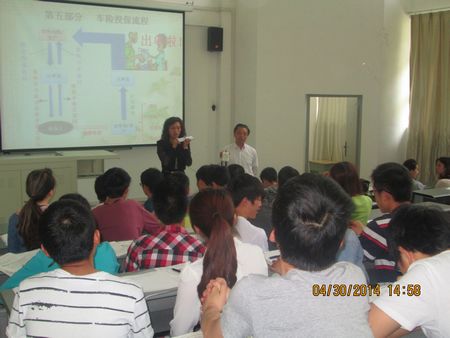 在当天下午的《汽车保险与理赔》的课堂上,机电系请来了合作企业锦泰财产保险股份有限公司都江堰支公司的保险培训师肖顾问一道为汽车营销12、13级学生共同讲授《汽车保险与理赔》中的汽车商业保险知识。课堂首先由校内教师组织,检查学生完成项目作业情况、复习已学汽车交强险知识,引入汽车商业保险,然后课堂传递给校外教师。校外保险培训师肖顾问以锦泰保险公司的险种类为例,把学生虚拟成自己公司的保险代理人资格考试学员,通过典型汽车保险案例,形象、生动地为学生讲授汽车商业保险知识。肖顾问利用保险员培训的各种技巧及话术进行教学,校内教师在过程中配合校外教师讲授,学生感觉新奇、生动,课堂气氛活跃。课堂快结束时,教学主导权又回到校内教师手中。