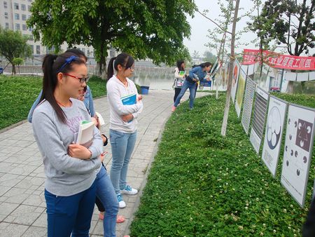 妙趣横生的心理图片吸引了很多同学驻足观看,有的同学看得目不转睛,思考着心理图片的带来的启发;有的同学对某个图片充满了疑惑,在仔细观察后恍然大悟,兴奋得与同伴们分享心得……在观看的同学中不时传出一阵阵欢笑与惊呼,同学们讨论着、研究着,这些属于心理学研究范畴的关于图形知觉、视错觉、视觉后像等图片充分激发了同学们强烈的好奇心和求知欲。