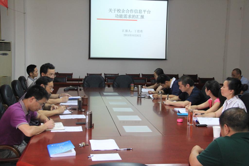 8月8日上午9:30-10:40,在示范建设办的召集下,学院在行政楼二楼会议室召开了校企合作信息平台功能需求论证会。徐时彬副院长主持论证会,岳文喜副院长,智慧校园项目组王开淮、丁思勇、李建及示范建设办同志出席会议,赖晓凡、向月波、朱克永、余勇、周雪梅、杨柳、魏明英、赵浩等担任论证专家。
