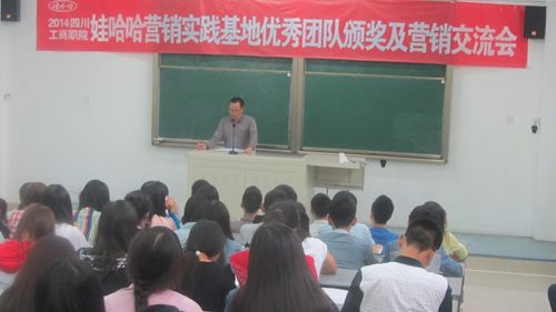 9月22日下午,娃哈哈实践基地优秀团队颁奖及营销交流会在我院J1b306教室举行。管理系党总支副书记魏红军,成都市区拓展经理白小易、营销专业教研室主任罗小舟出席了颁奖会 ,管理系营销专业全体同学参加了大会。此次娃哈哈营销活动,管理系销售组代表队荣获四川省销售冠军、营销组荣获四川省营销季军。