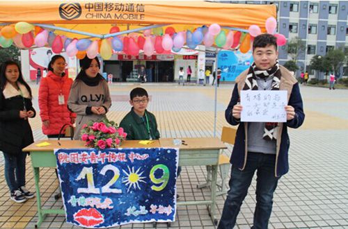 活动前夕,院团委青年传媒中心通过腾讯微博、新浪微博宣传了“12·9”爱国运动的历史背景、事件的经过及其伟大的历史意义,让同学们牢记“12·9”爱国运动精神。此次活动院团委以爱国教育为契机,大力开展爱国运动宣传,促进广大青年的爱国主义热情和奋斗激情。宣传活动虽然只有短短两天,但同学们的参与热情依旧高涨。大家纷纷拿起笔写下自己对国家的祝福,写下他们对祖国的热爱,对未来的无限期许与祝愿。“爱我中华”“壮哉我大中国”“祝中国越来越强大”……一句句看似简单的话语中却饱含着同学们的祝福和自豪,表达了大家的爱国之情。期间,还开展了“有奖问答”活动,向同学们提出“12·9”运动的相关问题,同学们也积极参与其中,这种寓教于乐的方式确实提高了同学们对历史的关注度及兴趣。
