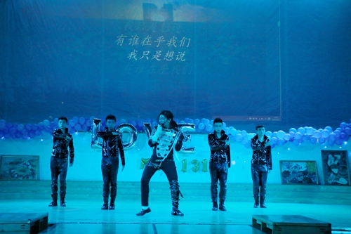 来自设计艺术系动画14308班的董鑫豪同学是Michael Jackson的忠实粉丝,练习Michael的舞蹈长达八年,能有机会在校园当中举办自己的专场模仿秀一直是他的一个梦想。由于身体原因,本次晚会将是他的告别演出。为了能完成自己的梦想,从去年11月份开始,董鑫豪同学就开始精心的筹划准备和辛苦地排练。