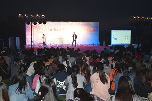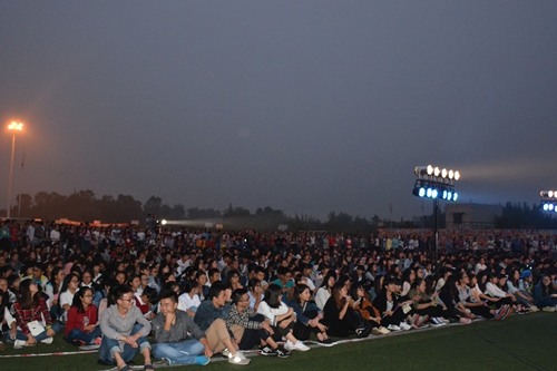 9月29日晚,由财经系文艺部举办的“心连新,梦飞YOUNG”迎新晚会在学院操场举行。财经系党总支副书记聂文俊,团总支书记以及财经系各辅导员和刚刚踏入大学校门的同学们共同观看了晚会。